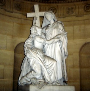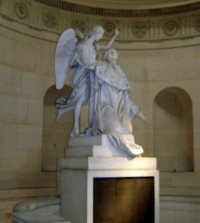 The marble statue to the left as you enter is of Marie Antoinette Supported by Religion. It is the work of Jean Pierre Cortot.