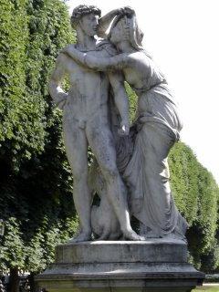 In the Jardin Robert Cavelier de la Salle is found the stone sculpture made by Charles Alphonse Achilles Gumery called La Nuit, Night. There is also the stone sculpture made by Gustave Grauk in 1870 called, Le Crépuscule, Twilight.