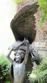As you enter the Great Hall, though mythic figures flank you on either side, your eye is drawn to the far end where under the rotunda sits Bourdelle's "Dying Centaur", a magnificent, haunting work, simple in form with a geometrical purity.