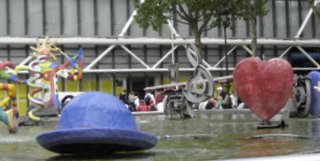 On the south side of the Pompidou Center (which is also called the Beaubourg, by the way), is Place Igor Stravinsky. In the Fountain Stravinsky, designed by Niki de Saint Phalle, are several large and colorful moving sculptures and fountains, themed to Stravinsky's works, that children often ride on in the summertime.