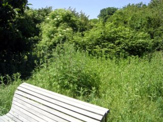The next Garden is the Wild Garden, or the Garden in Movement. It is a large and completely overgrown area with groves of bamboo, mounds of old-fashioned rose bushes, daisies, tall Queen Anne's lace, wildflowers and lots of weeds.