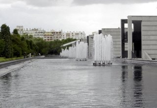 Between the greenhouses in Parc Andre Citroen is a plaza containing 120 individual fountains which rhythmically shoot vertical jets of water at heights varying from 7 inches to 7 feet.