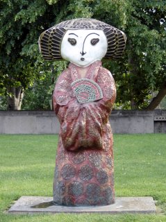 The elevated terrace on the south side of the park borders the Seine river. Placed here are playful statues representing different ethnicities and some comical characters.