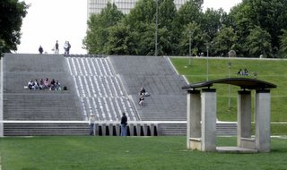 East of this skateboard park is a wide stairway that leads to an expansive terrace. Down the middle of this stairway are several channels of water making a very interesting cascading fountain.