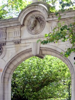 Speaking of horses, on the south-east corner of the park is an arched entryway which features the sculpted head of a horse at the top.