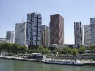 Boats of all descriptions go by on both sides of the island. Boats are moored along the Left Bank (south side) in front of Beau Grenelle, a modern inner-city styled housing and business complex. On the Right Bank (north side) is found the circular shaped home of Radio France.