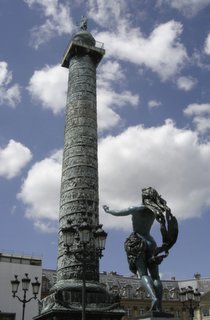 The 44 meter column standing in the center of the Place was designed by Denon, Gondouin and Lepére, constructed between 1806 and 1810 and commissioned by Napoleon to honor the soldiers at the Battle of Austerlitz, and himself. It is modeled after Trajan's Column in Rome, as is the Colonne de Juillet, the July Column, which stands in the middle of Place de la Bastille.
