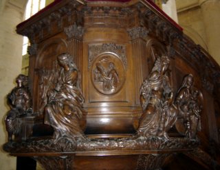Another great treasure of the church is the wooden pulpit which dates from 1651. It is beautifully carved and has at it's base, holding the pulpit upon his shoulders, a sculpture of Sampson.