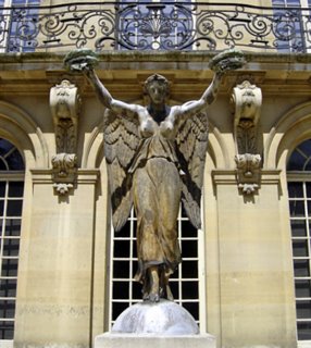 A covered walkway separates the Court of Flags from the Court of Victory, so named for the dramatic statue of Victory holding out her laurels.