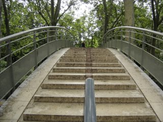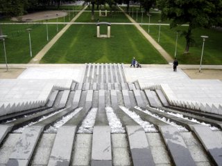East of this skateboard park is a wide stairway that leads to an expansive terrace. Down the middle of this stairway are several channels of water making a very interesting cascading fountain.