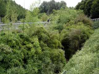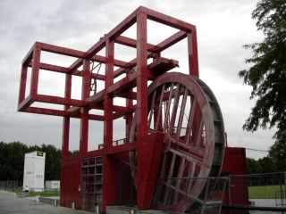 The Garden of Bamboo, le Jardin des Bambous, sits 6 meters below the rest of the Parc de la Villette. Several overhead walkways offer different views into this forest of bamboo, as well as a trail that winds through the garden below. A vertical, cylindrical water fountain created by Bernhard Leitner gives the sound of falling water to the area.