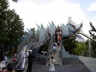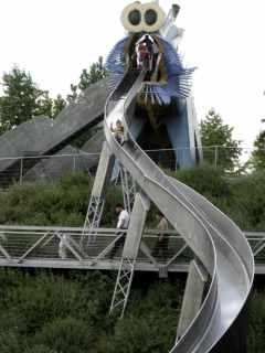 The Garden of the Dragon, le Jardin du Dragon, is a giant, 80 meter long climbing apparatus in the shape of a dragon with a long slide extending from its mouth.
