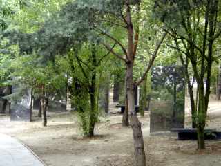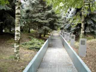 The Garden of Childhood Fears, le Jardin des Frayeurs Enfantines, has a walkway broadcasting eerie music as one crosses a forest of blue spruce and silver birch trees.
