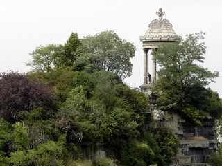 A lake of 2 hectares (5 acres) was dug, surrounding a 35 meter high rocky peak. On top of this peak, Gabriel Davioud built the "Temple of Sibylle", inspired by that of Tivoli. It evokes a sense of mythology. It is the quintessential example of romanticism in landscape architecture.