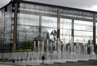 Between the greenhouses in Parc Andre Citroen is a plaza containing 120 individual fountains which rhythmically shoot vertical jets of water at heights varying from 7 inches to 7 feet.