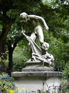 Four statues are found in this park: "Meditation" by Tony Noël (1878); "Cain" by Joseph Michel Caille (1876);