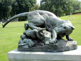 There are many sculptures of bronze and of stone in the Parc Montsouris. There is a monument to General Jose de San Martin (1778-1850), the liberator of Argentina, Chile and Peru, created by Van Peborgh; there is a sculpture called "Pureté" (Purity), by Costas Valsamis; the "Premier Frisson" (First Shiver), by René Baucour; a statue of Thomas Paine by Borglum;