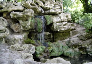 The island waterfall and grotto in the lake is home to a wide variety of birds.