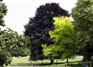 Alphand created an English Garden of three major lawns and 1,400 trees. There are many trees which are now over 100 years old including a Virginian Poplar, an American Sequoia, a Lebanese Cedar and Serbian Elms. Throughout the park many of the trees are labeled designating the type and variety of tree that it is. There are such exotics as gingko biloba and kaki.