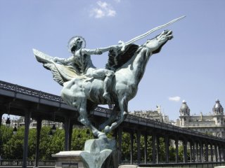 On the east side of Pont de Bir-Hakeim is a striking statue of a young man, with a thrusting sword, atop a horse that seems ready to fly out over the river. The statue is called, "La France Renaissante", or "France Reappearing". It was created by the Dutch sculptor Wederlink and offered by the Danish colony of Paris in 1930.