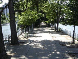 The Allée des Cygnes is a paved, tree-lined walk-way with many benches. One can still hear the sounds of the city traffic, but they are muted, in the not-so-far-distance. It's about as far from the city as one can get while still being in the city. It's a popular promenade for families, the elderly, joggers and people with dogs.
