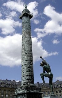 The 44 meter column standing in the center of the Place was designed by Denon, Gondouin and Lepére, constructed between 1806 and 1810 and commissioned by Napoleon to honor the soldiers at the Battle of Austerlitz, and himself. It is modeled after Trajan's Column in Rome, as is the Colonne de Juillet, the July Column, which stands in the middle of Place de la Bastille.
